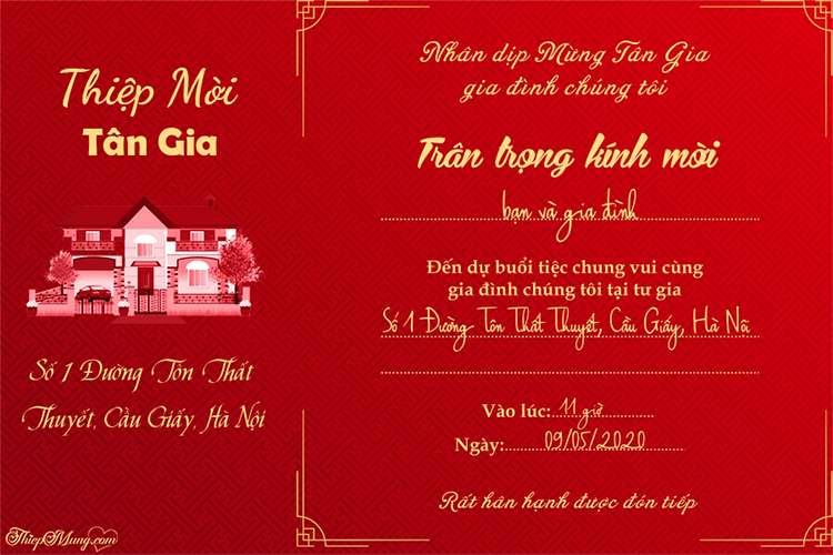Thiệp mời tân gia màu đỏ sang trọng