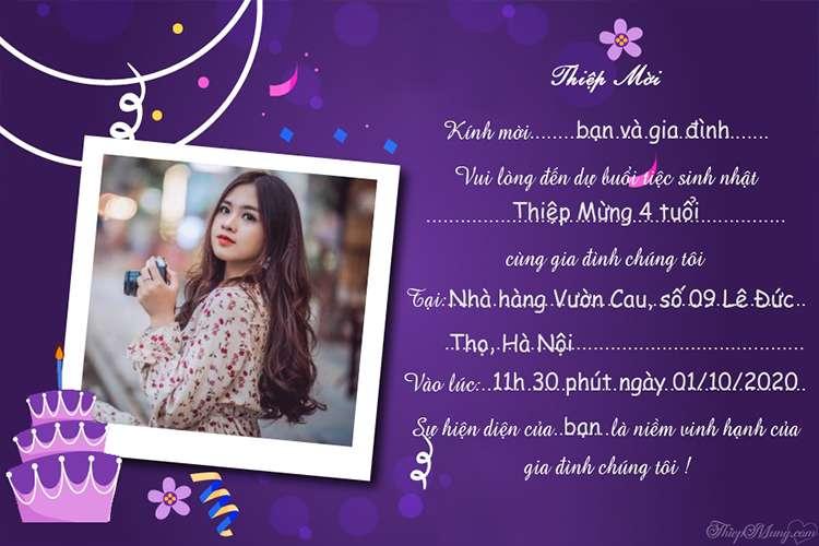 Thiệp mời sinh nhật màu tím đẹp lung linh nhất