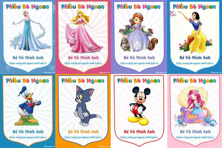 Mẫu phiếu bé ngoan với nhân vật hoạt hình ngộ nghĩnh