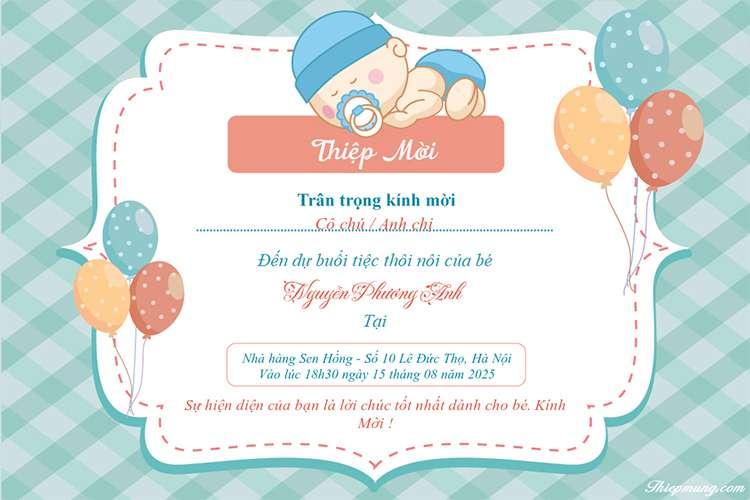 Tạo thiệp mời thôi nôi online màu xanh miễn phí