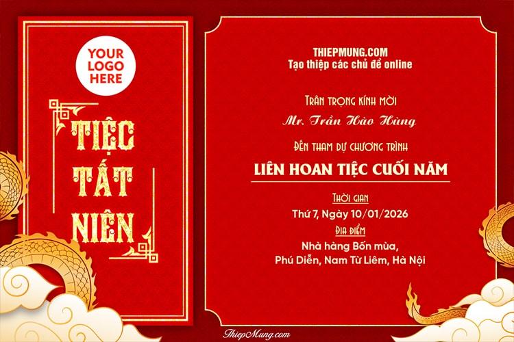 Mẫu thiệp mời tiệc tất niên phong cách truyền thống sang trọng