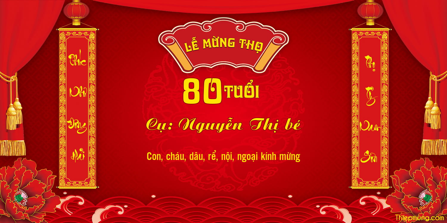 Banner Lễ Mừng Thọ thiết kế nổi bật sang trọng, ấm cúng thể hiện lời chúc phúc trường tồn, sức khỏe dồi dào và tuổi thọ bền lâu. Bạn có thể chỉnh sửa số tuổi, họ tên và nội dung theo yêu cầu, đáp ứng đa dạng nhu cầu in ấn và trang trí sự kiện mừng thọ hiện nay.