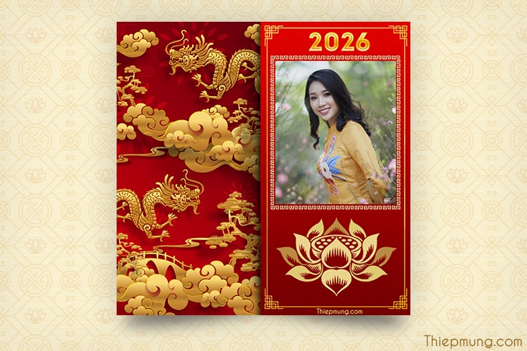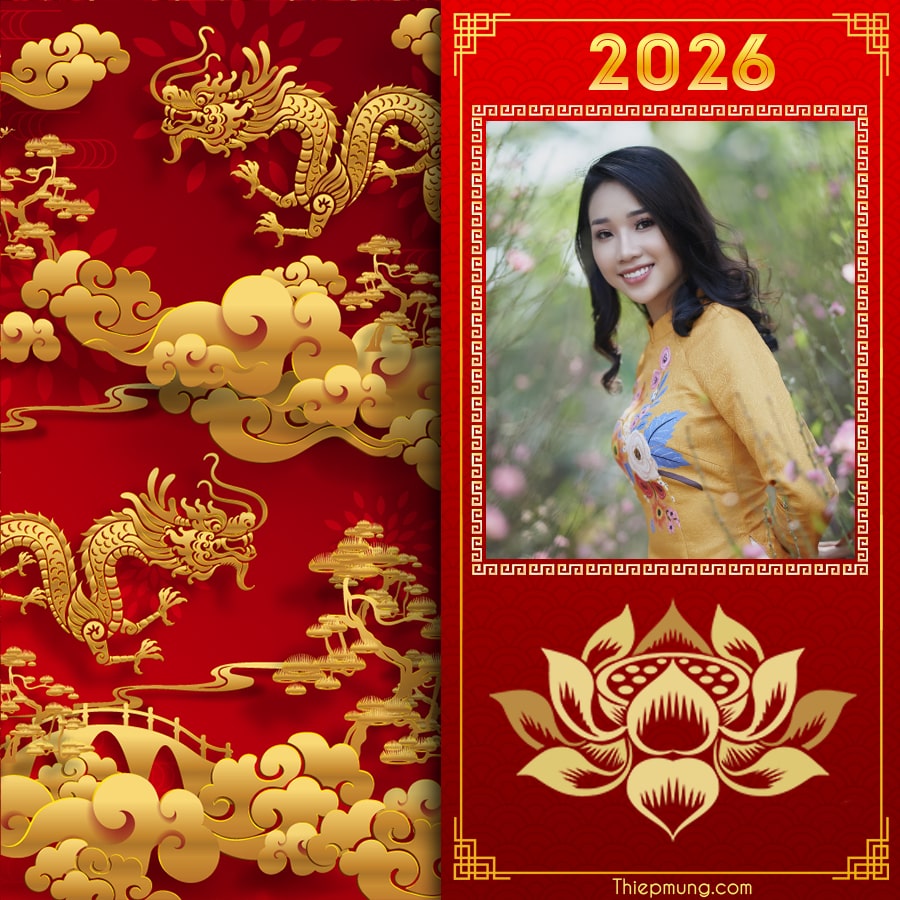 Tạo khung ảnh Tết Nguyên Đán 2026 trực tuyến, khung ảnh chúc Tết năm mới 2026 đẹp nhất với ảnh của bạn. Thỏa sức ghép ảnh Tết cổ truyền độc đáo, sang trọng với nhiều mẫu khung ảnh: trúc vàng, rồng vàng, pháo tết,... giúp bạn tạo và tải về hình ảnh chúc mừng năm mới đẹp nhất - Tiện ích tạo hiệu ứng ảnh Tết trực tuyến ý nghĩa chỉ có tại Thiepmung.com.
