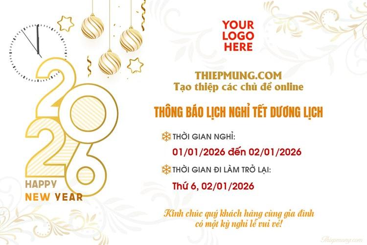 Tạo Thông báo nghỉ Tết Dương Lịch 2026 online
