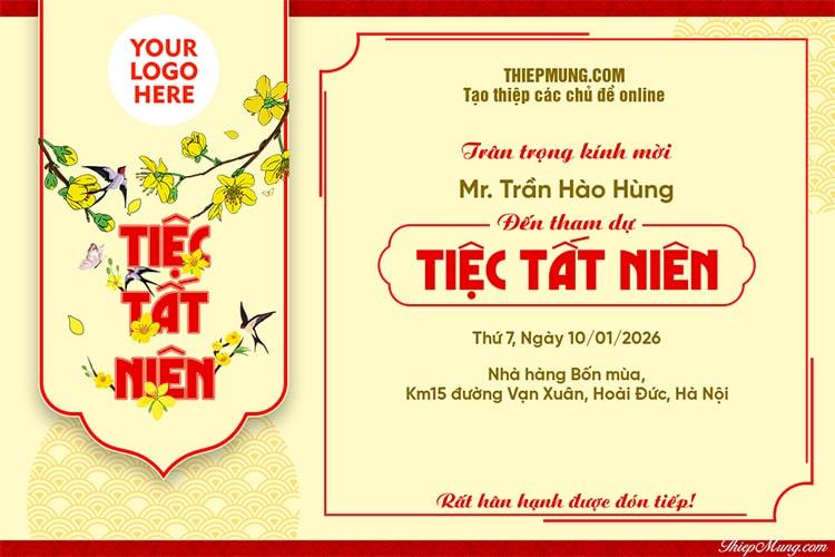 Mẫu thiệp mời Tiệc Tất Niên thiết kế đẹp với chim én và hoa mai