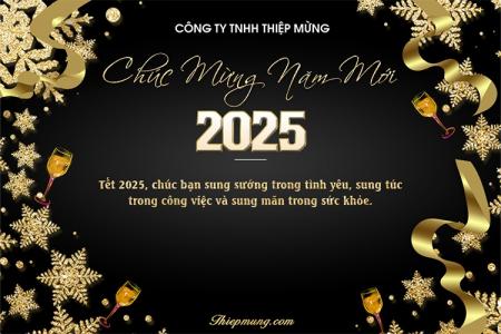 Mẫu thiệp chúc mừng năm mới 2025 nền vàng sang trọng