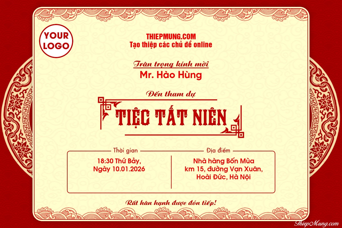 Mẫu thiệp mời tiệc tất niên phong cách truyền thống sang trọng