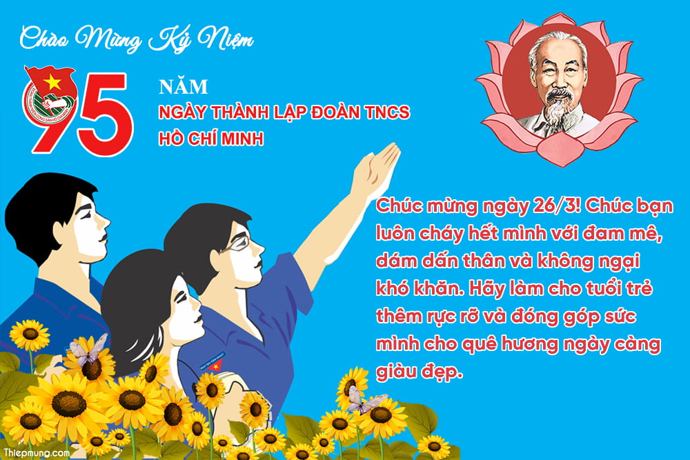 Thiệp chúc mừng 26/3 đẹp miễn phí cho ngày Thành lập Đoàn trở nên vui vẻ và ý nghĩa hơn. Thiết kế thiệp kỷ niệm 95 năm ngày thành lập Đoàn 2026, hình ảnh thiệp chúc mừng tháng thanh niên với lời chúc ý nghĩa gửi đến các đồng chí đoàn viên thanh niên trên khắp cả nước đã có thành tích xuất sắc trong công tác đoàn và phong trào thanh thiếu niên.
