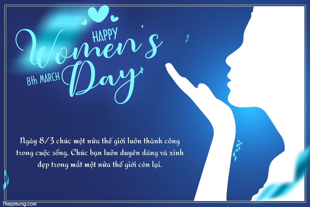 Ngày 8/3 chúc một nửa thế giới luôn thành công trong cuộc sống. Chúc bạn luôn duyên dáng và xinh đẹp trong mắt một nửa thế giới còn lại.