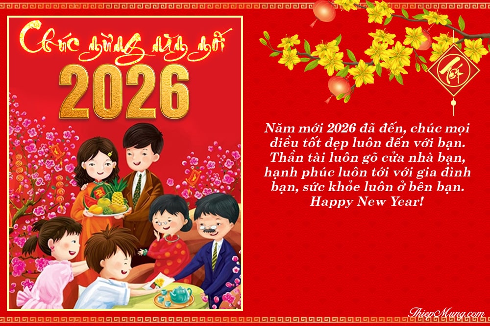 Tết đến là dịp để mọi người trong gia đình chúc tụng nhau và đây là tấm thiệp chúc mừng năm mới 2026 đẹp ý nghĩa dành cho bố mẹ, ông bà. Tạo thiệp chúc tết năm mới 2026 cho gia đình và người thân để mang đến một không khí vui tươi và ý nghĩa. Mẫu thiệp chúc Tết ấm áp mà bạn có thể viết tên hoặc lời chúc trên thiệp thật dễ dàng. Hãy để dịp Tết này là cơ hội để bạn bày tỏ tình cảm yêu thương chân thành đến người thân trong gia đình mình.