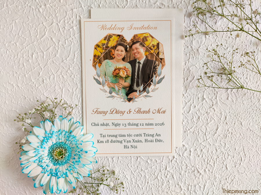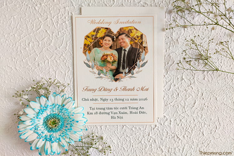Mẫu thiệp cưới online phong cách hoa sang trọng vừa đơn giản lại tinh tế sẽ giúp bạn sở hữu những tấm thiệp đám cưới đẹp chỉ trong tích tắc. Tải lên hình ảnh cưới của bạn và làm cho đám cưới của bạn trở nên đáng nhớ hơn với một lời mời đám cưới trực tuyến miễn phí. Với thời điểm MXH online đang ngày càng phát triển, việc tạo lời mời cưới online là rất cần thiết. Truy cập Thiepmung để tạo ngay một mẫu thiệp cưới ưng ý ngay thôi nào.