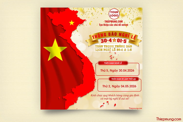 Tạo thông báo lịch nghỉ lễ 30/4 và 1/5 online