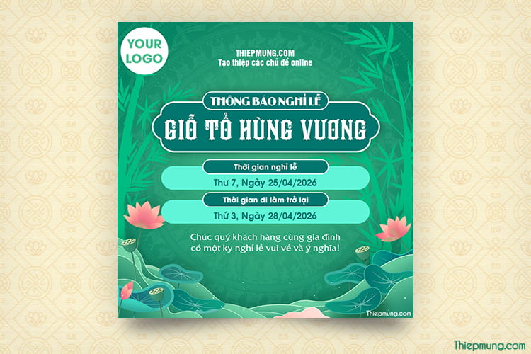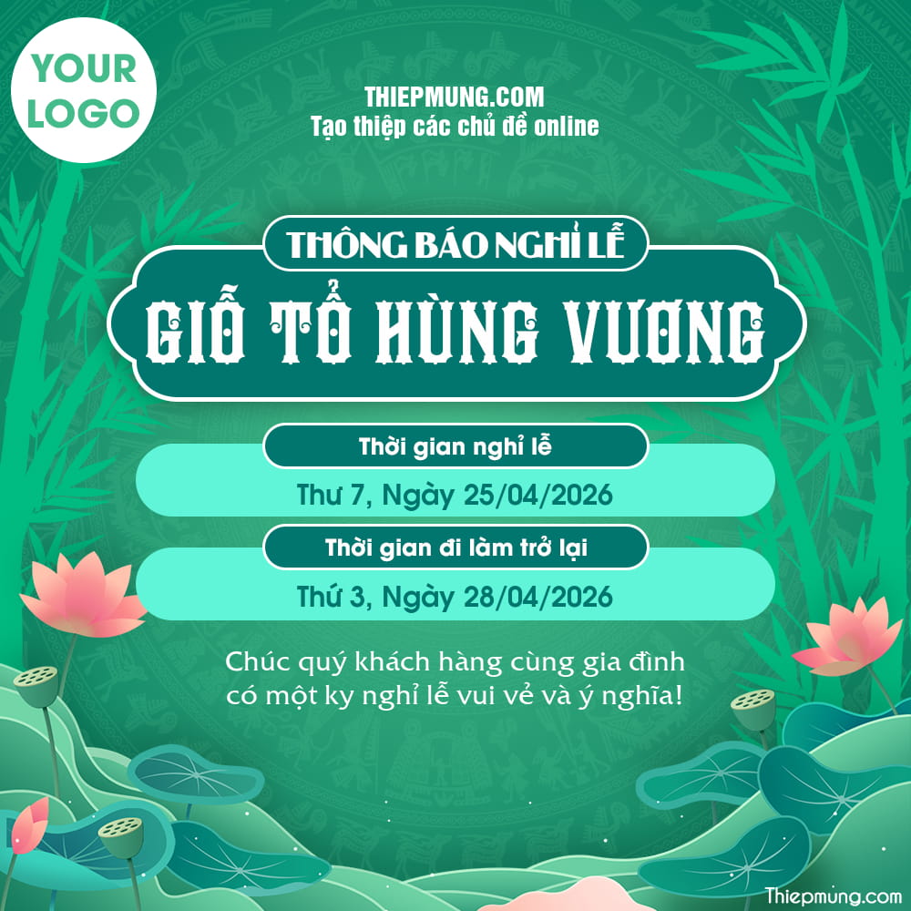 Tạo thông báo lịch nghỉ lễ Giỗ Tổ Hùng Vương chuyên nghiệp online