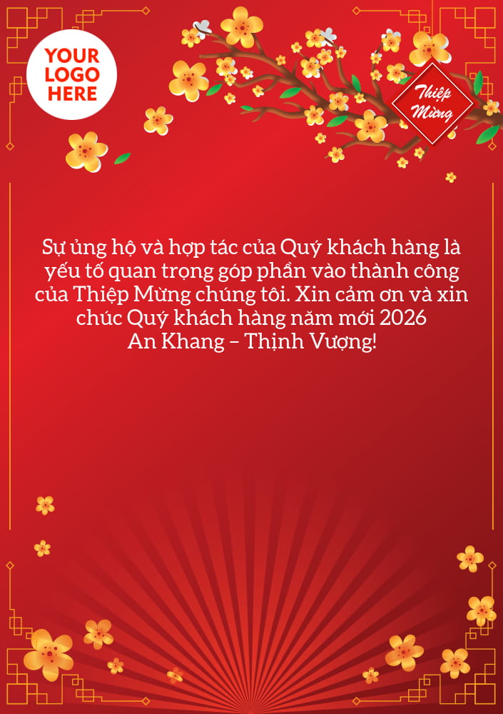 Tạo thư chúc Tết Bính Ngọ 2026 là một hình thức chúc Tết khá phổ biến khi mỗi dịp Tết đến xuân về. Các công ty doanh nghiệp hãy lưu ngay thiết kế thư chúc Tết hoa mai cho Tết Nguyên Đán 2026 thể hiện sự chu đáo trao đến tay nhân viên, khách hàng và đối tác của mình. Mẫu thư chúc Tết 2026 trên nền đỏ truyền thống sẽ giúp bạn mang không khí xuân trên trang mạng xã hội hoặc gửi mail cho khách hàng đối tác một cách chuyên nghiệp. Ngoài mẫu thư chúc Tết được tạo trực tuyến này, bạn có thể tham khảo các thiết kế thiệp Tết năm mới 2026 đẹp ấn tượng cho bạn bè, người thân của mình.