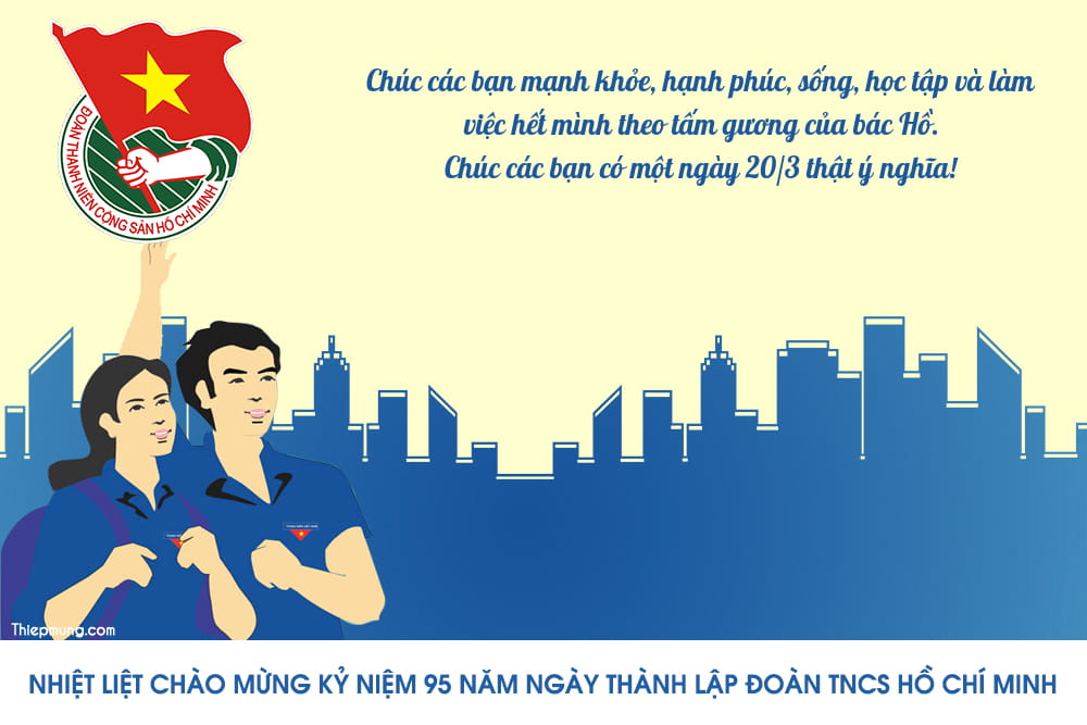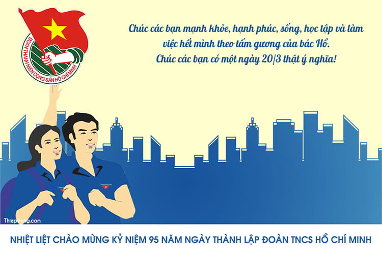 Chia sẻ mẫu thiệp kỷ niệm ngày thành lập Đoàn 26/3 mới nhất 2026 với màu xanh áo thanh niên đặc trưng. Tạo thiệp chúc mừng 95 năm ngày thành lập Đoàn (3/2/1931 - 3/2/2026) miễn phí từ Thiệp Mừng. Bạn có thể viết lời chúc 26/3 lên thiệp, truyền tải những thông điệp ý nghĩa nhân ngày thành lập Đoàn để có một ngày kỷ niệm vui vẻ, ý nghĩa.