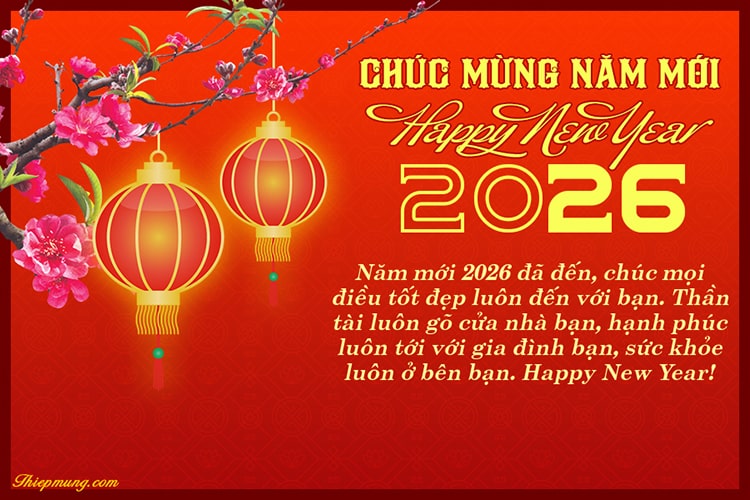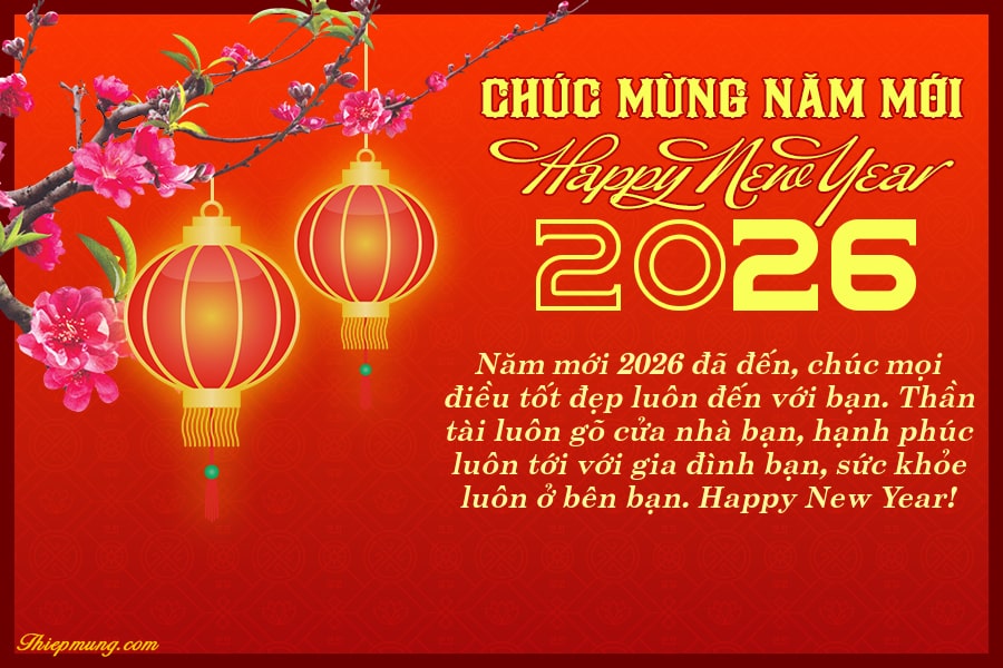 Tạo thiệp chúc Tết 2026, mẫu thiệp chúc mừng năm mới 2026 nền lồng đèn đỏ đẹp cho bạn gửi lời chúc năm mới đến bạn bè và người thân. Mẫu thiệp lồng đèn chúc Tết Bính Ngọ để gây ấn tượng với bất kỳ ai trong ngày đầu năm. Chọn ra thiết kế thiệp tết bạn yêu thích và viết lời chúc lên thiệp một cách đơn giản hoàn toàn miễn phí.