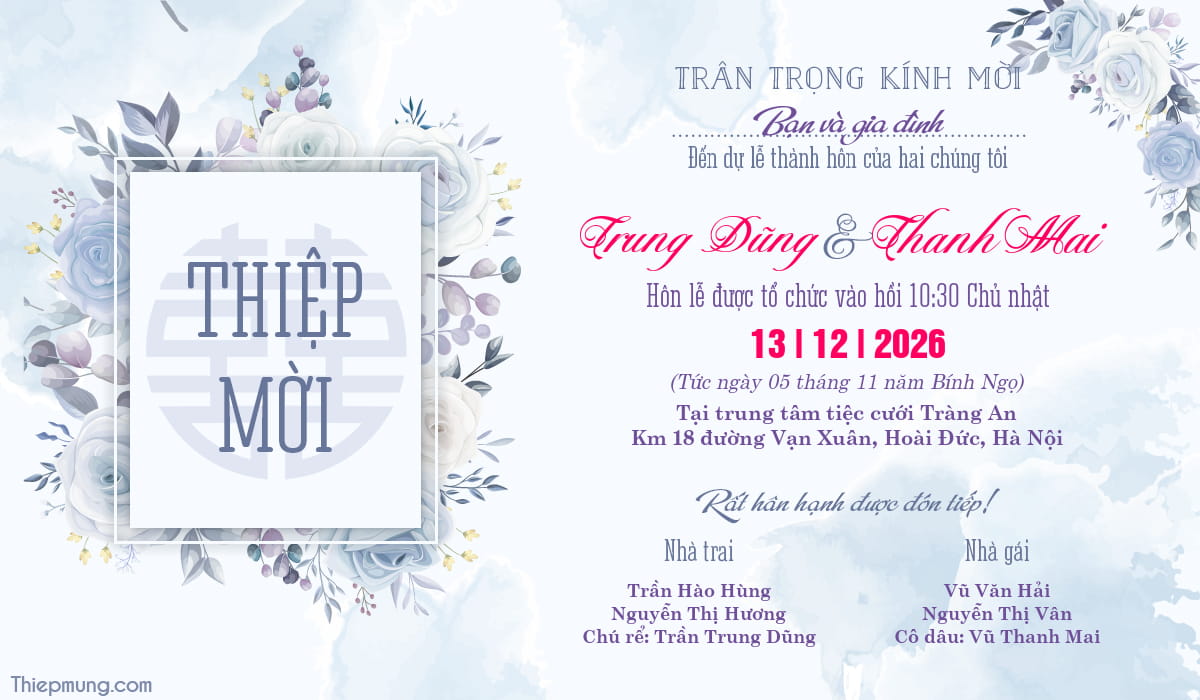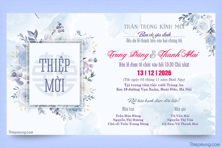 Chia sẻ thiết kế mới nhất về thiệp mời cưới 2026! Hình ảnh thiệp cưới chủ đề hoa cỏ độc lạ và tinh tế là xu hướng lựa chọn thiệp cưới của rất nhiều cô dâu chú rể thời gian gần đây. Thiết kế thiệp cưới với hoa mẫu đơn đẹp và sang trọng phù hợp với các cặp đôi yêu thích phong cách đơn giản, tinh tế mà vẫn nổi bật,...Tạo cho mình một tấm thiệp mời cưới online 2026 đẹp nhất giúp bạn gửi lời mời lịch sự và ấn tượng đến bạn bè và người thân qua mạng xã hội.