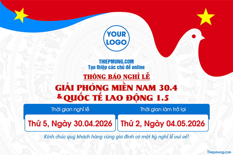 Thông báo lịch nghỉ lễ 30/4 – 1/5 trang trọng cho doanh nghiệp và trường học
