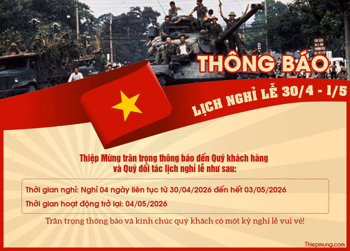 Thông báo nghỉ lễ 30/4 - 1/5 dành cho công ty
