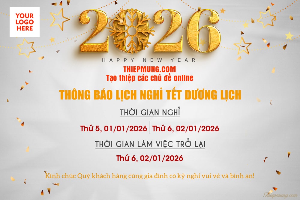 Tạo Thông báo nghỉ Tết Dương Lịch 2026 online