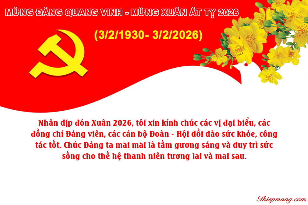 Chia sẻ thiết kế mới nhất thiệp kỷ niệm ngày thành lập đảng 3/2. Tạo thiệp chúc mừng ngày thành lập Đảng 2026 miễn phí, hình ảnh thiệp chúc mừng ngày 3/2/2026 nhân dịp 96 năm ngày thành lập Đảng CSVN đẹp ý nghĩa với lời chúc sẽ là món quà tuyệt vời để gửi đến Đảng ta nói chung và những người đã và đang hoạt động trong công tác Đảng nói riêng. Chọn từ những thiết kế thiệp ngày thành lập Đảng có sẵn từ Thiệp Mừng.