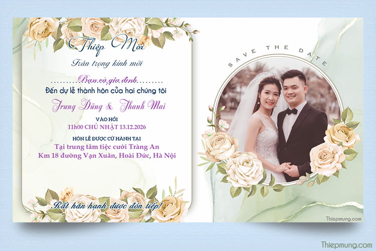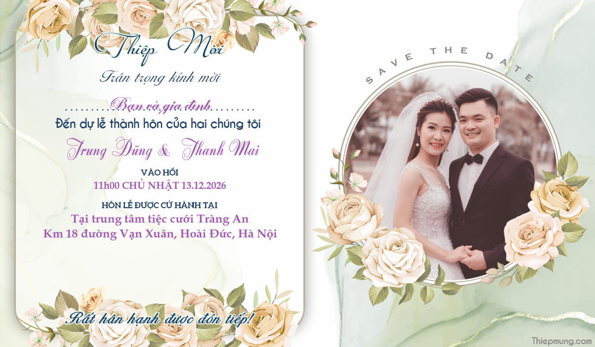 Nếu bạn đang tìm kiếm những mẫu thiệp cưới đẹp để tạo và tải miễn phí, bạn đã ở đúng nơi. Với thiết kế thiệp cưới online mẫu hoa sáng tạo và mới mẻ, bạn có thể dễ dàng gây ấn tượng với khách mời, dễ dàng gửi lời mời đám cưới chân thành đến bạn bè và người thân trên mạng xã hội khi không thể gặp mặt trực tiếp. Cách tuyệt vời để thông báo đám cưới đến bất cứ ai trong thời đại MXH phát triển như hiện nay.
